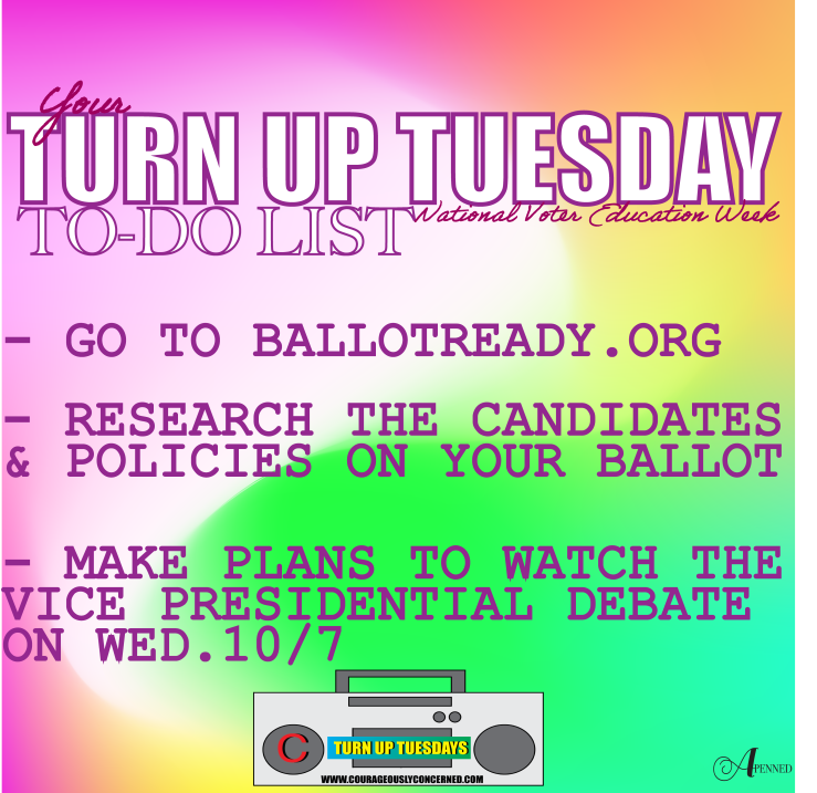 Happy Turn Up Tuesday! Today we focus on becoming educated about the policies and candidates on our ballots. Remember! We are not only voting for the presidency.