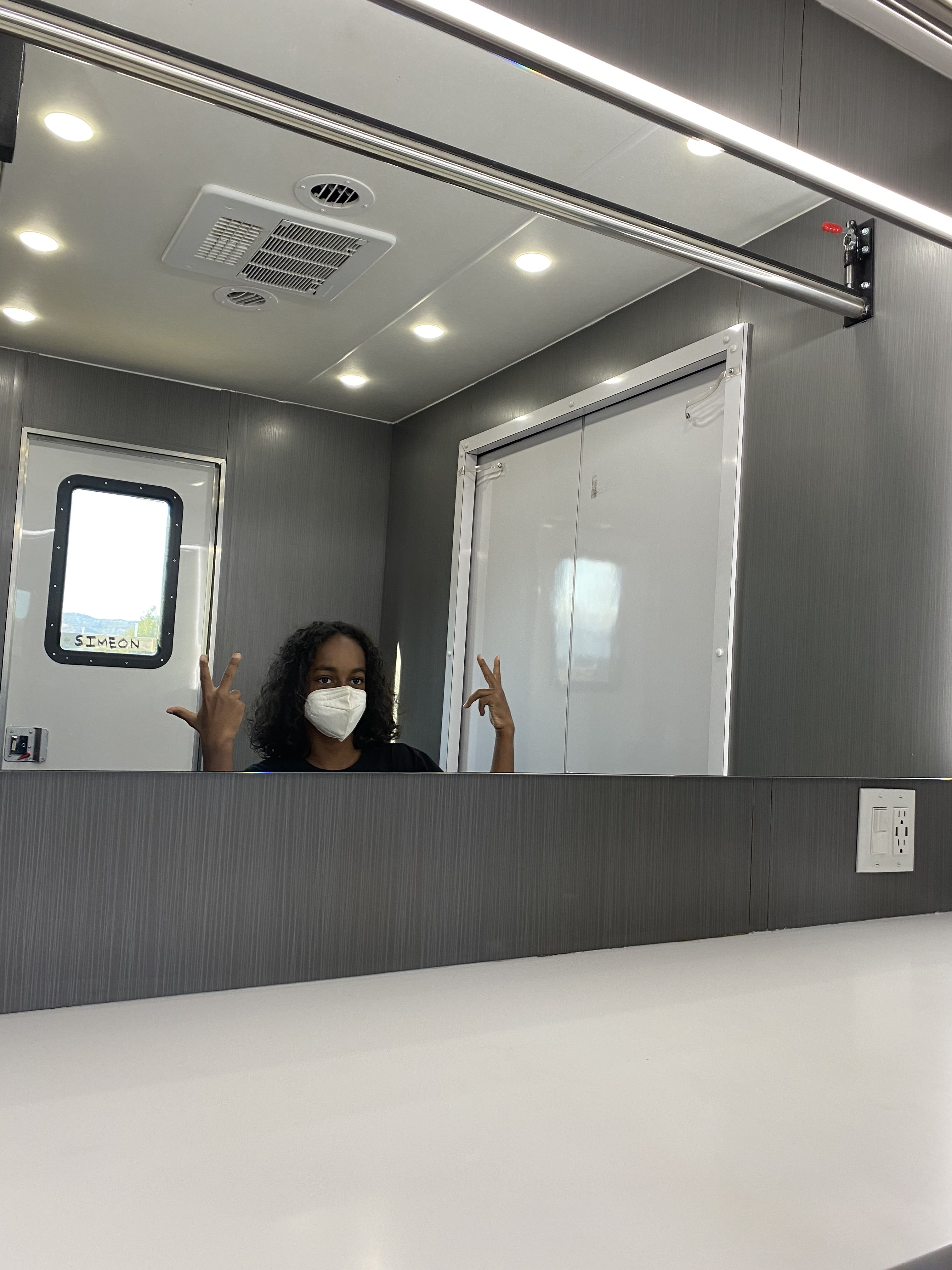Seeing my baby brother in his element was something else. He had his own air conditioned trailer. He was fitted for custom costumes. Golf carts were taking us everywhere.